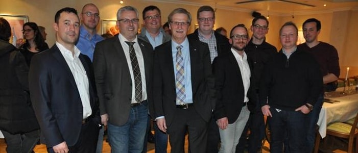 Bildinformation: Vorstand und Jungunternehmer der ARGE Kaisersescher Gewerbetreibender - zusammen mit VG-Bürgermeister Albert Jung (3. v. l.) - wollen den Wirtschaftsstandort in und um die Eifelstadt weiter stärken. Foto: Pauly