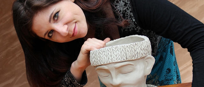 Bildinformation: Das Töpfern als Gebrauchskunst wie diesen „Kopf-Topf“ hat Denise Bartlett entdeckt. Die Tätowiererin aus Kaisersesch mit fundierter künstlerischer Ausbildung ist auf vielen Gebieten kreativ. Foto: privat