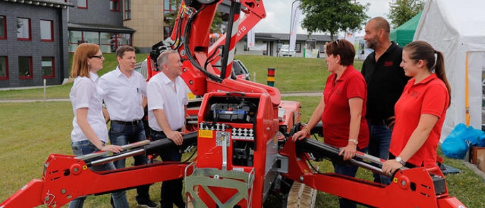 Sofort ins Auge sticht das Großaufgebot an Maschinen der Firma Bleser aus Neuwied. Mehr als ein Dutzend Bagger, Häcksler und Kräne werden von den Besuchern unter die Lupe genommen. Doch was lockt ein Neuwieder Unternehmen nach Kaisersesch? „Wir haben eine neue Kooperation mit der Firma Bertgen geschlossen. Deshalb zeigen wir hier, was wir können“, sagt der Geschäftsführer Hans-Dieter Bleser. Bei der neuen Mietstation gibt's Baumaschinen aller Art, sogar einen Minikran, der durch die Wohnung in den Garten fahren kann, ohne ein Trümmerfeld zu hinterlassen. Gegenüber präsentiert Jörg Bertgen, Vorstandsmitglied der Arge, sein Unternehmen. „Es ist schön, wenn man sich mit Stammkunden mal etwas länger unterhalten kann. Wir beraten aber auch“, sagt Bertgen. Der erste Kontakt zum Kunden sei wichtig, damit sich dieser später an die Firma erinnert.